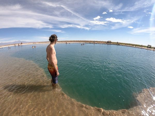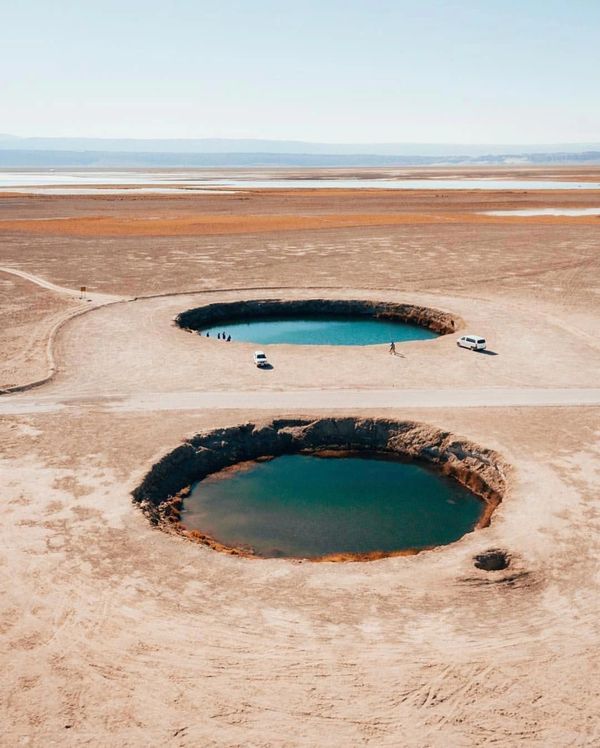 Continuing our journey towards two round lagoons called Ojos del Salar, which contain a lower concentration of salt.
