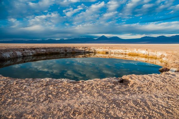 Laguna Cejar located inside the Salar de Atacama at an approximate distance of 28 km from San Pedro, it boasts stunning scenic beauty with turquoise-colored waters and is surrounded by salts of various shapes.